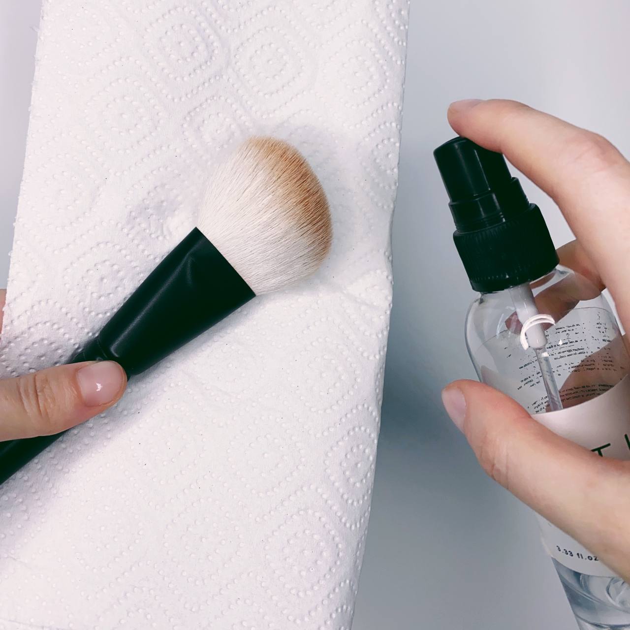 Для ежедневного очищения кистей мы рекомендуем использовать средства БЕЗ содержания спирта. Спирт сильно сушит, травмирует ворс, меняя его структуру, что существенно сокращает срок использования кисти.