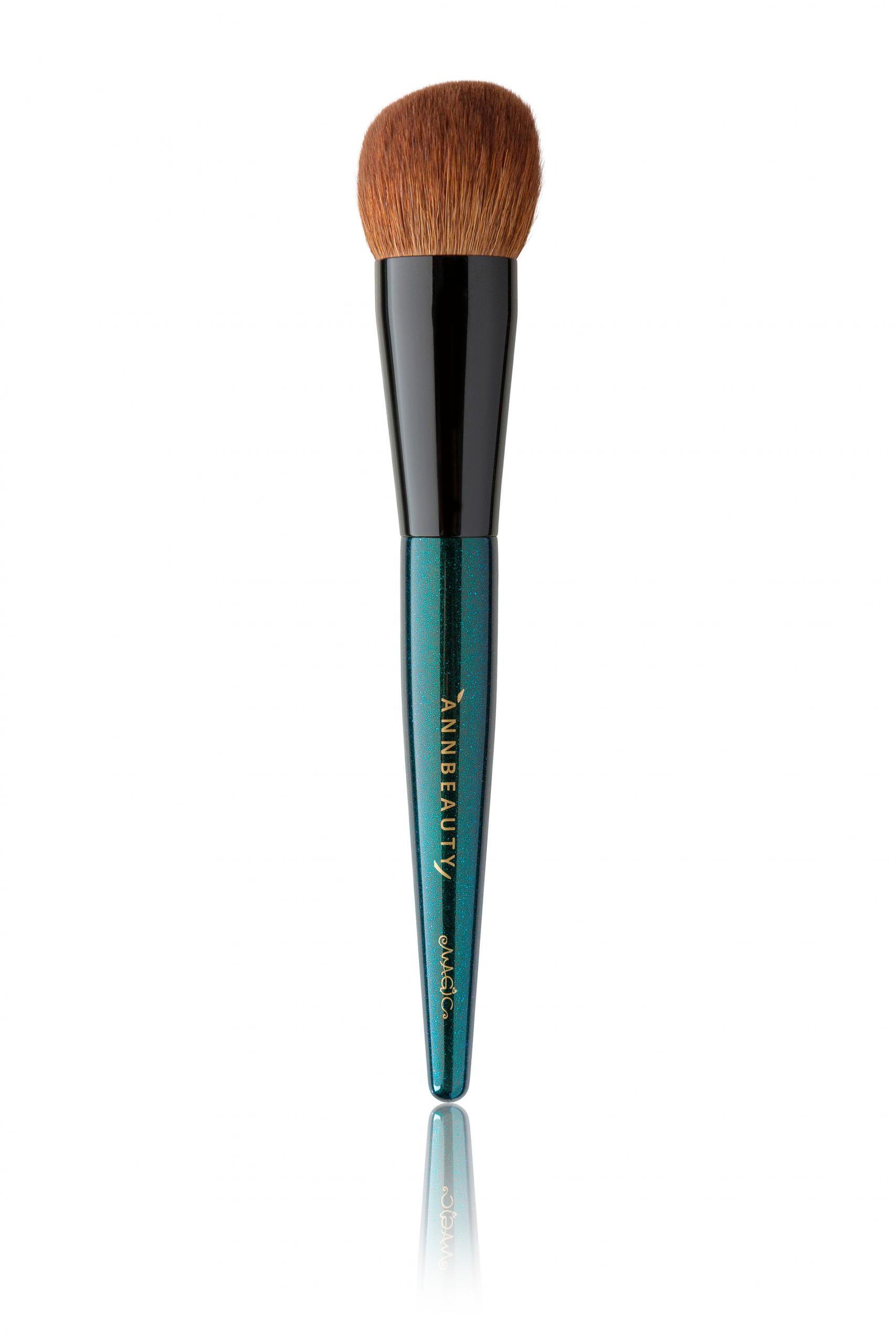 Кисть Annbeauty Magic M1 плотно набита, обладает скошенной формой, мягким и упругим ворсом. Создана для работы с кремовой и сухой текстурами. Подходит для нанесения и растушевки тона, румян, а также скульптора.